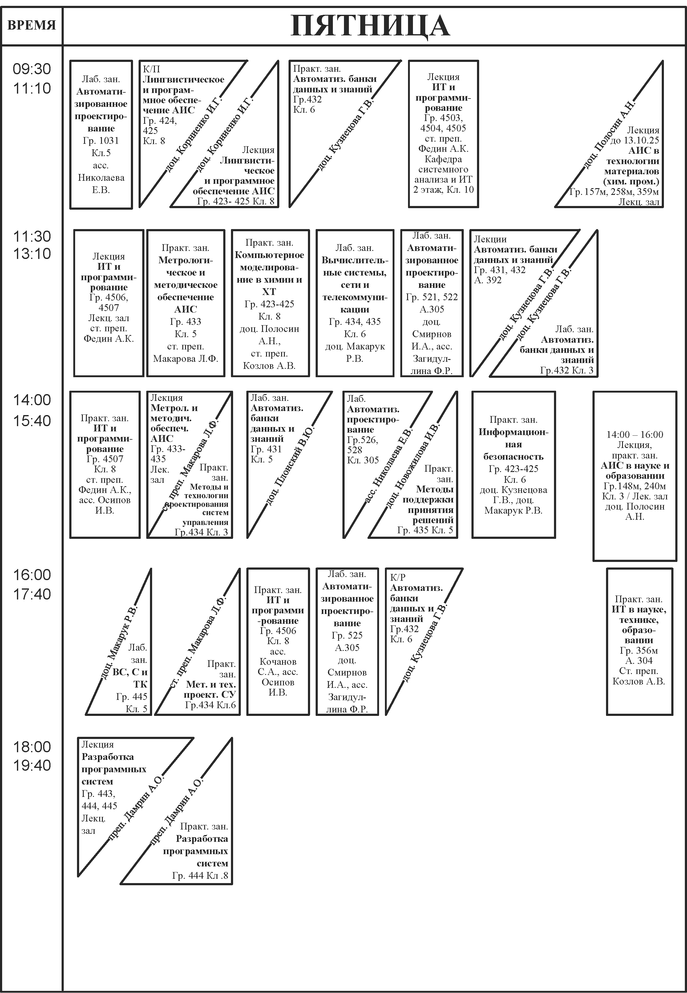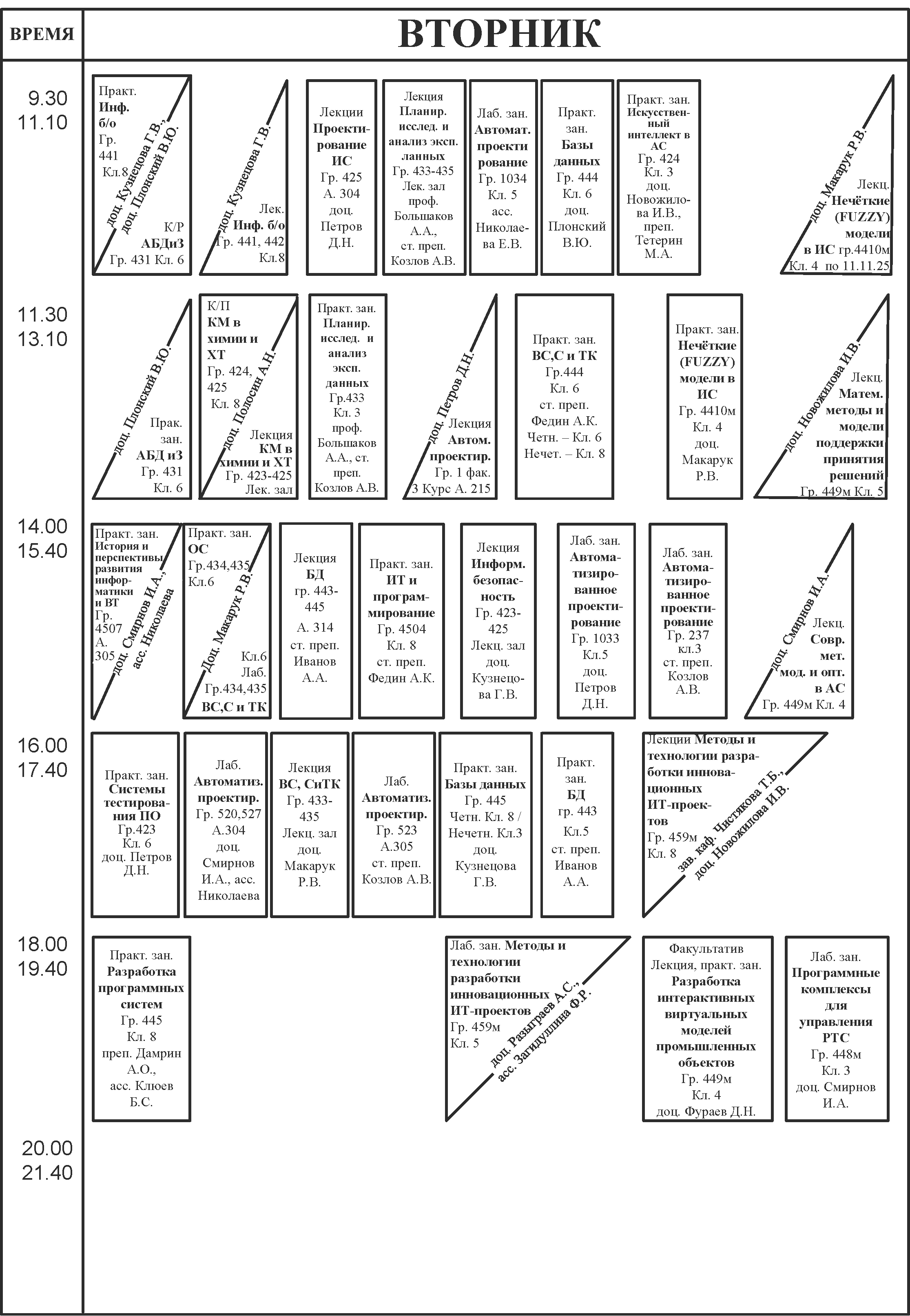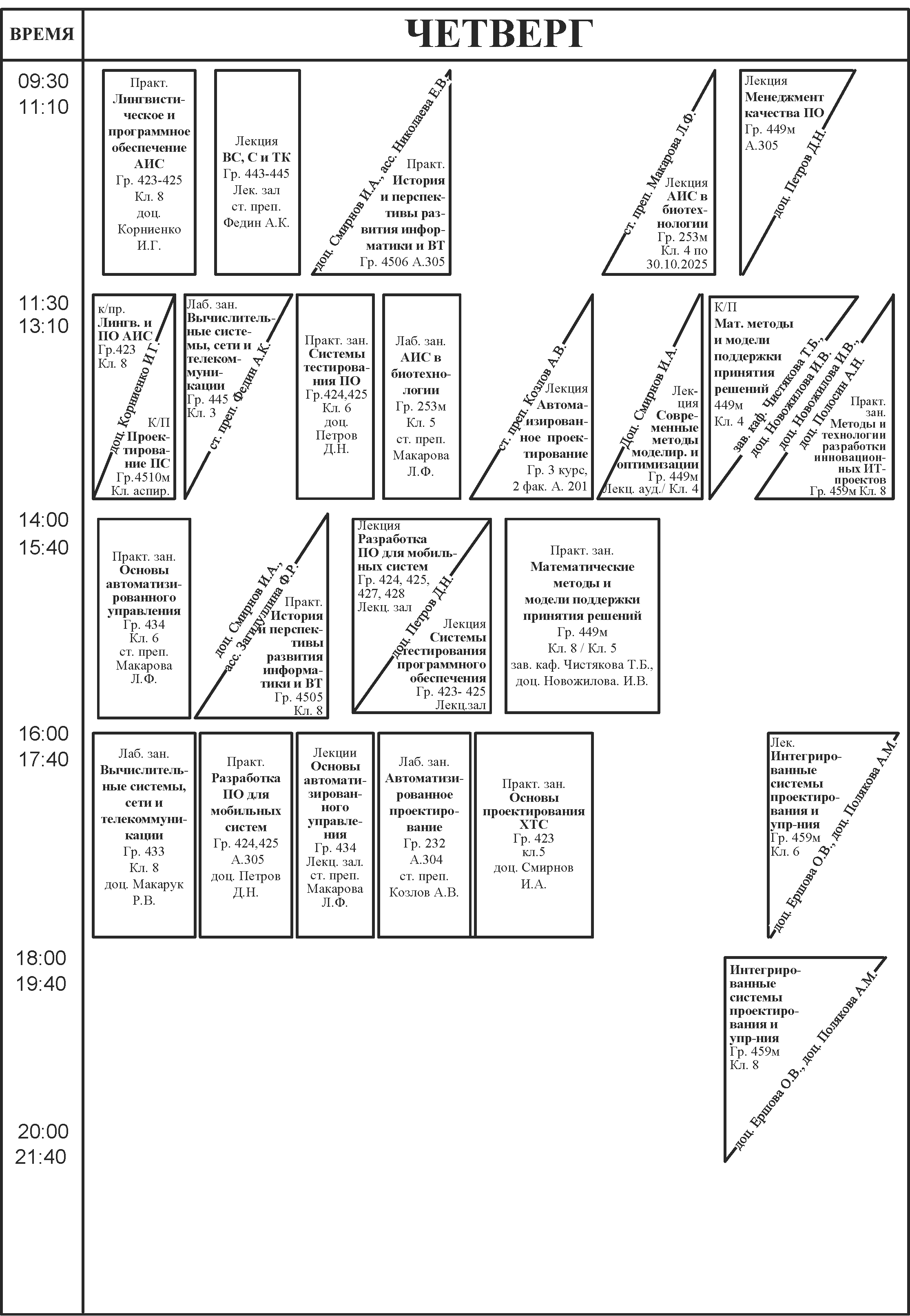 Внимание! Возможны изменения аудиторий и переносы занятий. Дополнительно следите за расписанием на официальном сайте ВУЗа, а также на стенде кафедры.